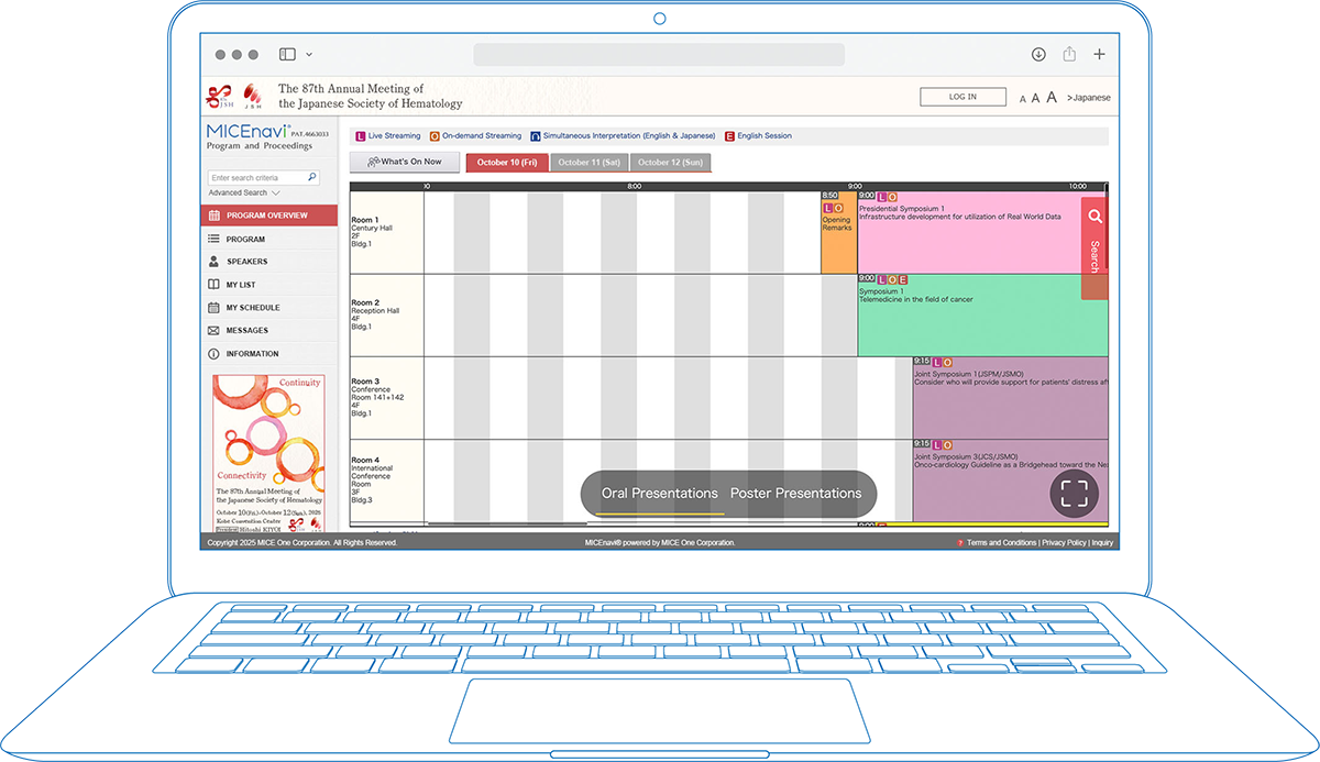 MICEnavi allows you to overview the meeting program and create your own personal schedule. You can bookmark the sessions you wish to attend.