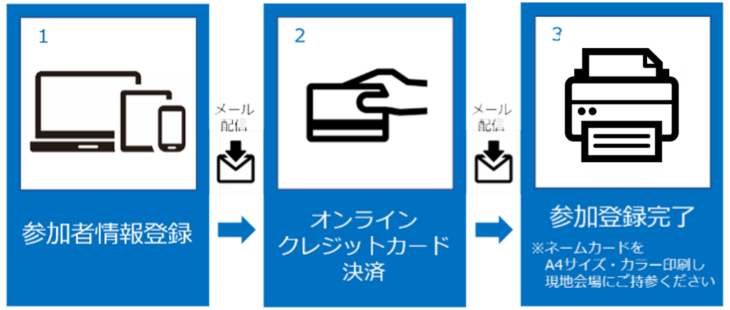 本ページ下部の「オンライン参加登録」ボタンより、参加登録画面にお進みいただき、必要事項を入力してください。参加登録後、入力した情報が記載された参加登録完了メールが自動送信されます。